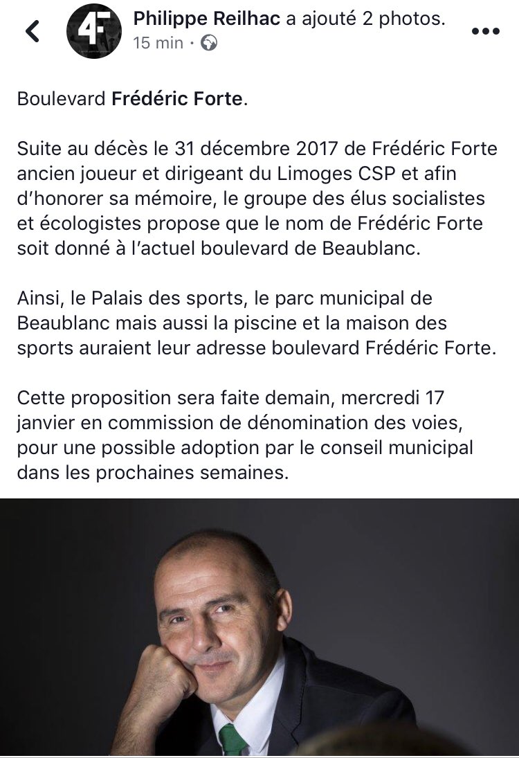 *Topic Frédéric FORTE saisons 2004 - 2018 - Emesset - 12-01-2018 Disons que... - parler de la succession de Fred quelques heures après sa mort était inapproprié. - parler de la succussion de Fred presque deux semaines après me parait concevable. - le faire dans le topic qui lui est dédié est inapproprié... . Comme quoi tout le monde a raison, suffit de remettre les idées dans le bon ordre. Un topic est nécessaire mais pas celui de Murphy. Car les gens qui liront dans deux ans pourraient aussi penser que des le lendemain matin, on ne pensait plus qu'a la succession... Ãa n'était pas le cas. *Topic Frédéric FORTE saisons 2004 - 2018 - Bada - 12-01-2018 Emesset a écrit :Disons que...Tu as raison, il serait bien de ne pas en parler ici. *Topic Frédéric FORTE saisons 2004 - 2018 - themight - 12-01-2018 N'empêche, il y a un truc qui me tracasse dans cette disparition. J'ai l'impression qu'il n'y a pas eu beaucoup de communication sur le contexte. *Topic Frédéric FORTE saisons 2004 - 2018 - Yann87 - 12-01-2018 themight a écrit :N'empêche, il y a un truc qui me tracasse dans cette disparition. J'ai l'impression qu'il n'y a pas eu beaucoup de communication sur le contexte. Qu'entends-tu par contexte ? *Topic Frédéric FORTE saisons 2004 - 2018 - Escroc87 - 14-01-2018 Trois journalistes se souviennent "de cette rare soirée où les téléspectateurs français ont vibré pour du basket. " http://www.telerama.fr/television/linterception-de-frederic-forte-sur-toni-kukoc,-cest-un-geste-dintello-du-basket,n5437708.php "Sept millions de Français assistent au sacre inattendu des héros du Cercle Saint-Pierre à Athènes, dans la salle du Pirée. Du jamais vu ! " *Topic Frédéric FORTE saisons 2004 - 2018 - Jefferson87 - 16-01-2018 Un boulevard Frédéric Forte ? https://pbs.twimg.com/media/DTqI7WfWAAEs_WI.jpg:large *Topic Frédéric FORTE saisons 2004 - 2018 - Sebaravis - 16-01-2018 Jefferson87 a écrit :Un boulevard Frédéric Forte ?Une proposition qui ne me déplaît pas *Topic Frédéric FORTE saisons 2004 - 2018 - JACKPOT - 16-01-2018 as conte mais que c'est une propositon des socilos p Sebaravis a écrit :moi aussi mais vu que c'est une propostion des socialos pas sur que le Emile soit partant pJefferson87 a écrit :Un boulevard Frédéric Forte ?Une proposition qui ne me déplaît pas *Topic Frédéric FORTE saisons 2004 - 2018 - jeroma - 16-01-2018 Sebaravis a écrit :Jefferson87 a écrit :Un boulevard Frédéric Forte ?Une proposition qui ne me déplaît pas Pareil pour moi, je trouve que ça pourrait être une bonne idée. Le boulevard à son nom et une statue (comme l'envisage le maire de Limoges) à l'entrée du palais des sports, ce serait un bel hommage rendu à FF. *Topic Frédéric FORTE saisons 2004 - 2018 - Marcus5 - 16-01-2018 Pour ceux qui ont l occasion, revisonnez buzzer. C était bien, vraiment. D ailleurs l émission est bien construite, sympa comme programme. *Topic Frédéric FORTE saisons 2004 - 2018 - Magmax - 16-01-2018 Un boulevard Frederic Forte serait surement une bonne idée surtout venant de Philippe Reilhac qui a occupé 2 sièges de la loge du conseil régional pendant des années au frais du contribuable et des abonnés , il lui doit bien ça *Topic Frédéric FORTE saisons 2004 - 2018 - barra brava - 16-01-2018 Magmax a écrit :Un boulevard Frederic Forte serait surement une bonne idée surtout venant de Philippe Reilhac qui a occupé 2 sièges de la loge du conseil régional pendant des années au frais du contribuable et des abonnés , il lui doit bien çaTrès intelligent ça comme remarque !!! je ne te souhaite pas d'être malade un jour.... *Topic Frédéric FORTE saisons 2004 - 2018 - Magmax - 16-01-2018 Mais quand je suis malade je paye ma place et je demande rien a la collectivité et cela m'évite de faire des propositions gratuites *Topic Frédéric FORTE saisons 2004 - 2018 - Emesset - 16-01-2018 Je ne crois pas que ta remarque soit en rapport avec ce topic. *Topic Frédéric FORTE saisons 2004 - 2018 - patgauche - 17-01-2018 Le boulevard à son nom, je suis pas contre non plus. Une statue de lui avec Kukoc en face et le geste de l'interception, ça serait le top du top, je sais pas si c'est faisable mais j'adhère à fond *Topic Frédéric FORTE saisons 2004 - 2018 - tigermatt - 17-01-2018 patgauche a écrit :Le boulevard à son nom, je suis pas contre non plus. avec l'inauguration faite par Tony Kukoc himself... *Topic Frédéric FORTE saisons 2004 - 2018 - Emesset - 17-01-2018 Assisté de Messieurs Bellon et Collet. ^^ *Topic Frédéric FORTE saisons 2004 - 2018 - Moussman - 17-01-2018 tigermatt a écrit :patgauche a écrit :Le boulevard à son nom, je suis pas contre non plus. Qui reconnaitrait, la larme à lâÅil, que l'interception était bien valide